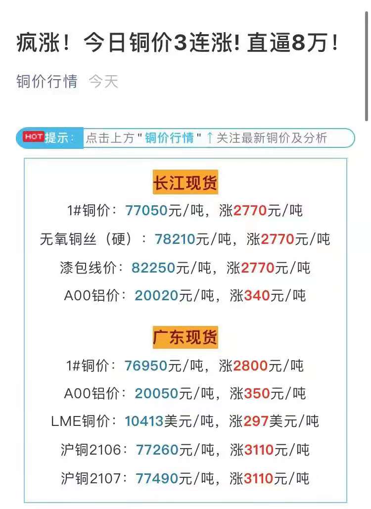 從上周以來(lái),銅價(jià)已經(jīng)在持續(xù)上漲,國(guó)際銅價(jià)飆升至歷史新高,對(duì)全球疫情反彈的樂(lè)觀(guān)情緒刺激了大宗商品市場(chǎng)的大幅上漲。而銅價(jià)上漲會(huì)導(dǎo)致銅加工行業(yè)面臨三大問(wèn)題:一是企業(yè)運(yùn)營(yíng)成本增加;二是下游市場(chǎng)需求量減少;三是部分產(chǎn)品品質(zhì)下降。面對(duì)這三大問(wèn)題,用銅企業(yè)該如何應(yīng)對(duì)?